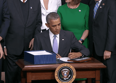 President Obama signs the 21st Century Cures Act. Notably, this law includes risk adjustment in the Hospital Readmissions Reduction Program to lessen the likelihood the program penalizes hospitals for factors outside their control—a key advocacy goal of America’s Essential Hospitals.