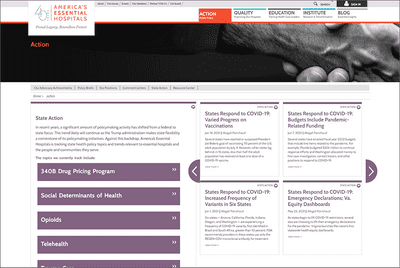 America’s Essential Hospitals expands its public policy focus to include analysis of state policies of interest to essential hospitals. This work focuses on comparative analyses and summaries of emerging state trends but doesn’t include lobbying at the state level. Content includes website articles, policy briefs, data-driven policy snapshots, and a standing state policy session at VITAL, our annual conference.