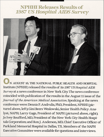NPHHI works with the Council of Teaching Hospitals (COTH) to survey large, urban public and teaching hospitals—members of NAPH and COTH—about AIDS care nationally. Institute staff conduct the survey to uncover the facts of the disease and its treatment and to address related medical, social, and economic questions.